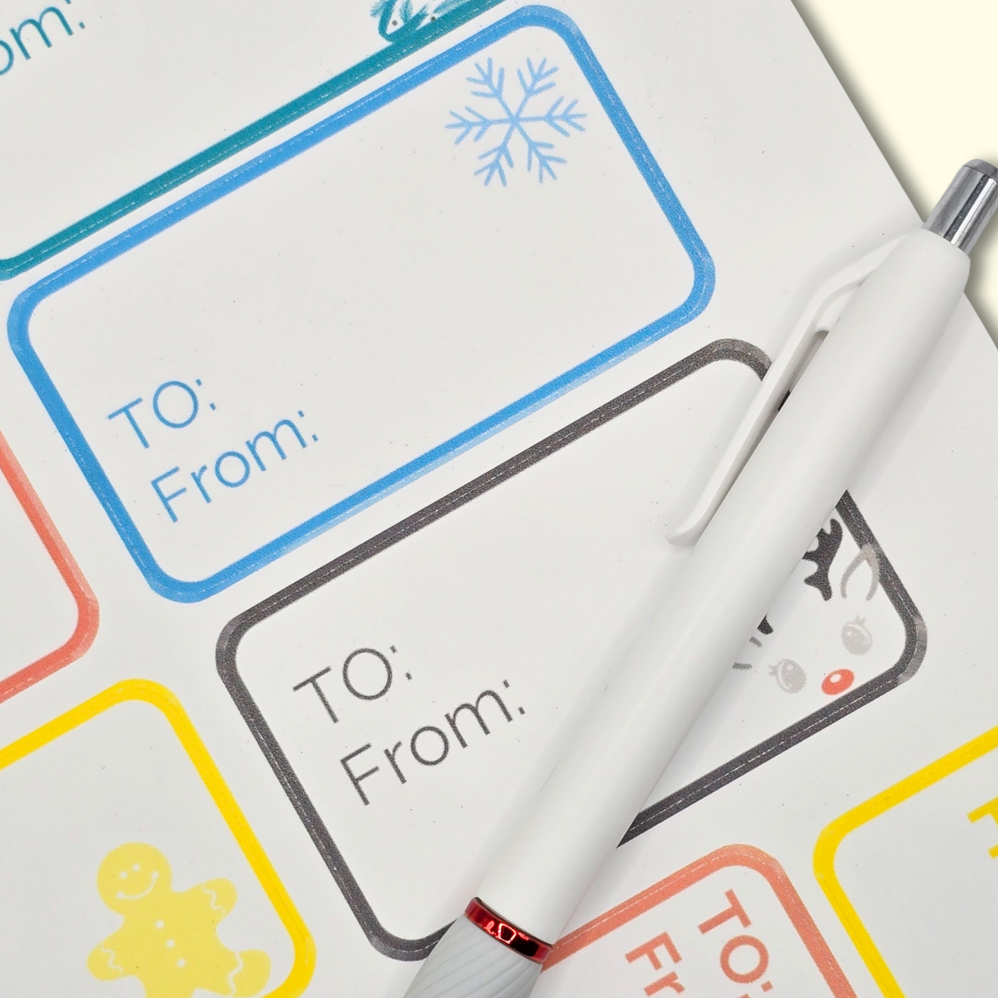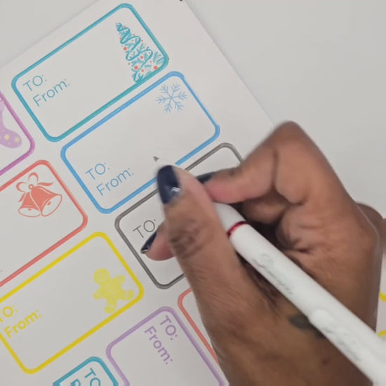 Keep your gifts cute, cohesive, and stress-free with these minimalist holiday gift label stickers. Each sheet includes 10 waterproof matte vinyl labels with a clean white background and whimsical holiday icons. Perfect for presents, stocking stuffers, teacher gifts, office exchanges, and anyone who loves simple + stylish wrapping.