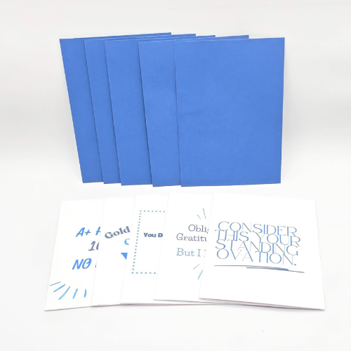 This 5-pack of printed-for-you thank-you cards is a love letter to the overachievers, the A+ humans, the ones who get sh*t done. Blank inside and paired with bold blue envelopes, they’re easy to use and hard to forget.